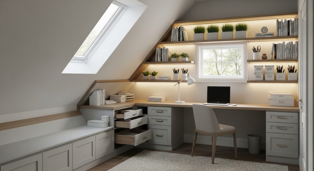 If you’ve ever looked at that awkward sloped ceiling corner and thought, “What can I even do with this?” — you’re not alone. Those tricky attic angles often go unused… but they hold incredible potential.
