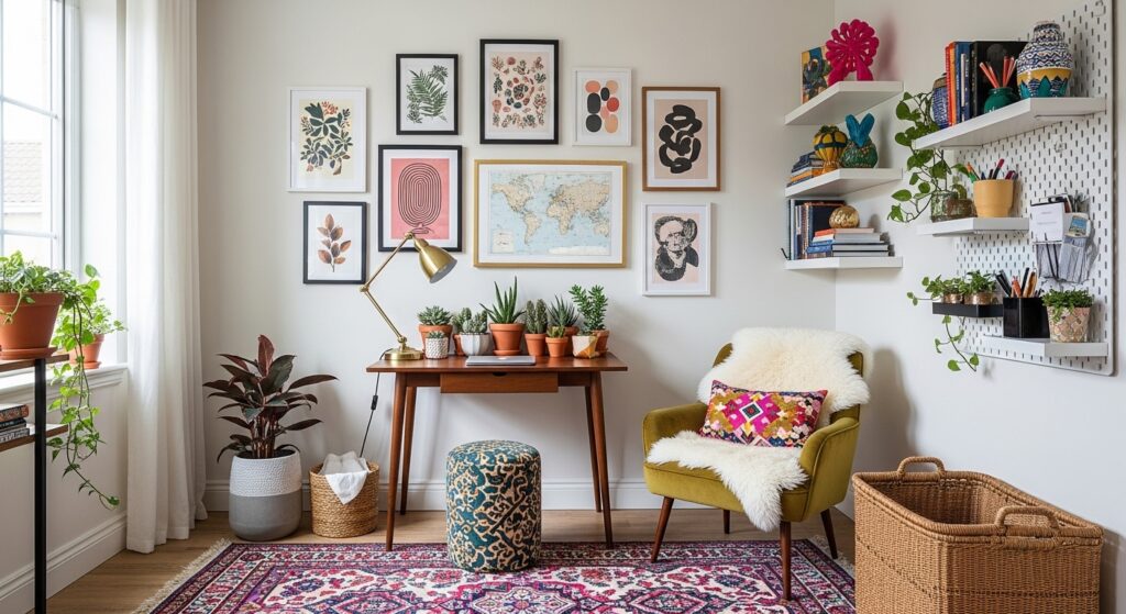 Scrolling Pinterest and saving colorful, artistic workspaces—but unsure how to bring that vibe into your own small room? You’re not alone. The beauty of a small home office eclectic style is that it doesn’t follow strict rules. It celebrates creativity, personality, and mixing styles in a way that feels uniquely you.